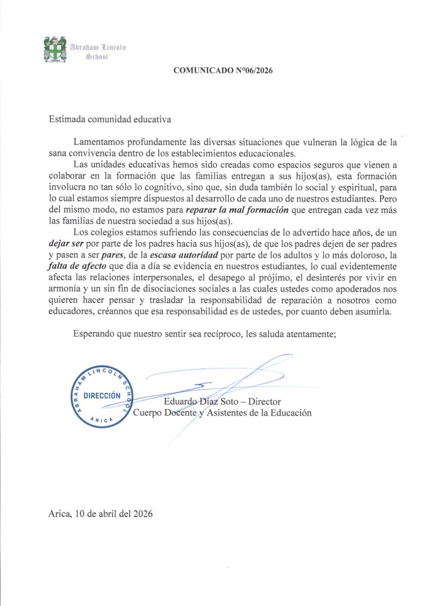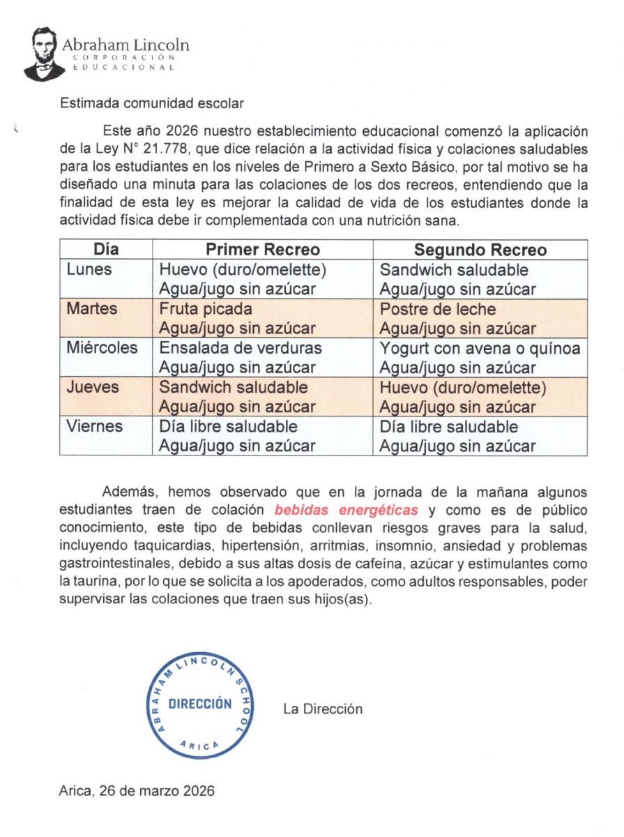 Estimada Comunidad del Colegio Abraham Lincoln: Reciban un cordial y fraterno saludo de parte de la Pastoral del Colegio. Queremos recordarles que nos encontramos viviendo el tiempo de Cuaresma, un período significativo para los cristianos, marcado por el recogimiento, la reflexión, la oración y la fraternidad. Este tiempo nos invita a renovar nuestra vida espiritual y a fortalecer nuestra cercanía con quienes más lo necesitan. Cada año, la Iglesia en Chile promueve la campaña solidaria denominada “Cuaresma de Fraternidad”, cuyo propósito es apoyar diversas acciones sociales que se desarrollan a lo largo del país. Durante el período 2025–2027, esta campaña estará dedicada especialmente a los adultos mayores, buscando acompañar y apoyar iniciativas que contribuyan a mejorar su calidad de vida. Como comunidad educativa, no queremos quedar ajenos a esta valiosa iniciativa solidaria. Por este motivo, a cada curso se le entregarán dos cajas de Cuaresma de Fraternidad, para que estudiantes, familias y apoderados puedan colaborar voluntariamente con un aporte económico. Invitamos a cada curso a promover y asumir este gesto solidario, que representa una forma concreta de vivir el espíritu de la Cuaresma a través de la generosidad y el compromiso con los demás. La campaña comenzará mañana hoy jueves 5 de marzo y finalizará el martes 31 de marzo. En esa fecha, las cajas deberán ser entregadas al Padre Mauricio y a la profesora Lorena, para realizar posteriormente el conteo de lo recaudado junto a un equipo de profesores del colegio, y proceder a su correspondiente depósito en beneficio de esta campaña. Agradecemos sinceramente su generosidad y compromiso con esta hermosa iniciativa de fraternidad, que nos permite vivir el Evangelio en gestos concretos de solidaridad. Fraternalmente,